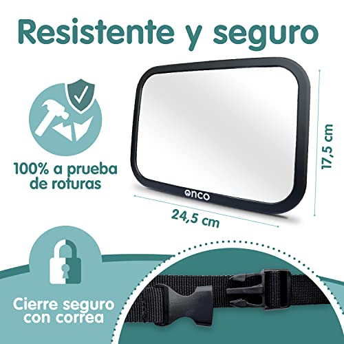 Uno de los aspectos más valorados en un espejo retrovisor para bebé es su resistencia a las sacudidas y golpes que se pueden producir durante el trayecto. El Onco espejo para coche es ideal porque es irrompible, hecho de vidrio acrílico irrompible que garantiza que ante impactos accidentales no haya roturas peligrosas. Esta característica añade un extra importante para la seguridad de tu bebé.