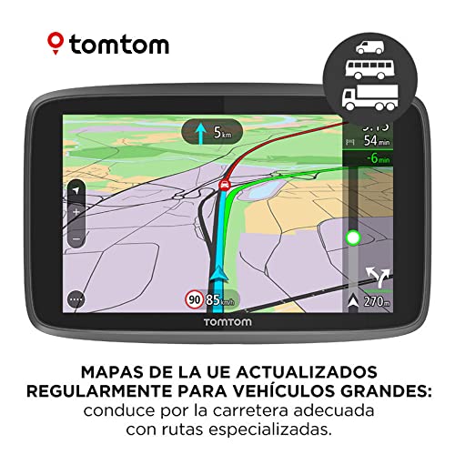El gps tomtom está desarrollado para ofrecer una actualización de mapas regular y mantiene una gran fiabilidad, a la vez que ofrece una experiencia intuitiva. Se trata de un dispositivo que simplifica mucho la gestión de rutas para camión, principalmente porque considera las restricciones específicas de vehículos grandes como peso, dimensiones y cargas peligrosas. Gracias a esto, es posible conducir de forma más segura evitando zonas donde el tamaño o ciertas limitaciones podrían complicar el trayecto.
