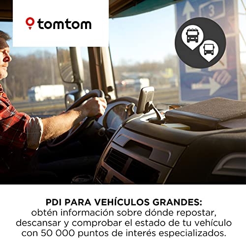 El TomTom GO cuenta con una base de datos rica en puntos de interés específicos para camión, como lugares donde repostar, descansar y realizar las comprobaciones de estado del vehículo. Esta información resulta fundamental para planificar paradas y cumplir con las normativas de descanso, facilitando la logística diaria del conductor profesional. Además, el navegador ofrece alertas sobre restricciones en el trayecto, como límites de velocidad específicos para camión y zonas de bajas emisiones, a la vez que ayuda a evitar atascos gracias a la información de tráfico en tiempo real.