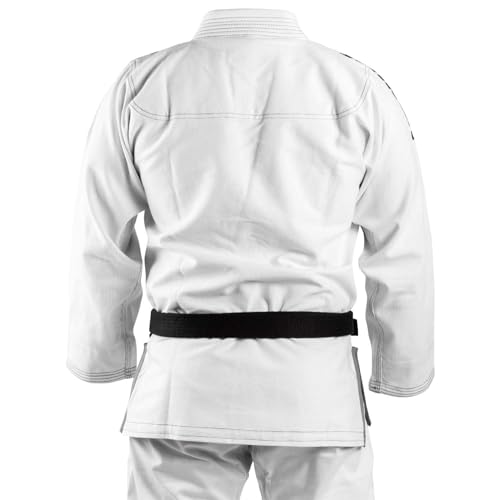 El kimono está fabricado con un tejido de algodón 100% de alta calidad, lo que le da un tacto agradable y buena capacidad de absorción durante el ejercicio. Además, cuenta con refuerzos estratégicos en mangas y rodillas para mejorar la resistencia al desgaste —un punto clave para quienes realizan movimientos complejos que someten esas áreas a constante tensión. Su chaqueta presenta un tejido de 350 GSM ripstop resistente, mientras que el pantalón tiene 230 GSM, un grosor que aporta durabilidad sin hacer el conjunto pesado.