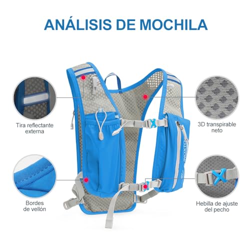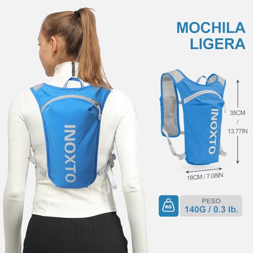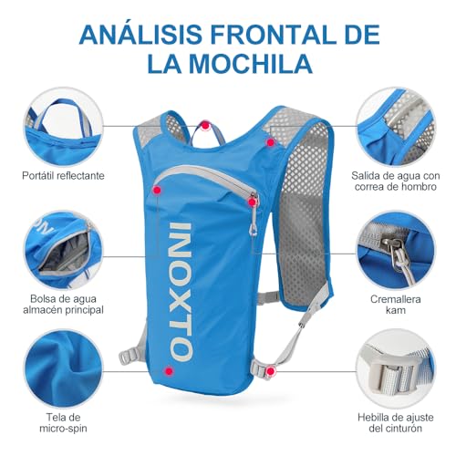 Si estás valorando una mochila que facilite mantenerte hidratado sin añadir peso excesivo o dificultades durante tu ejercicio, esta mochila de hidratación para correr de INOXTO puede ser lo que necesitas. Además, ofrece suficiente capacidad para cubrir las exigencias de diferentes disciplinas y espacios para llevar lo necesario sin complicaciones.