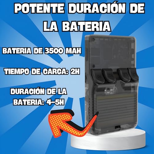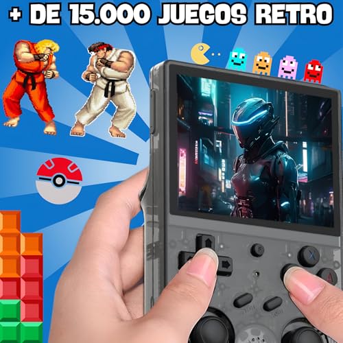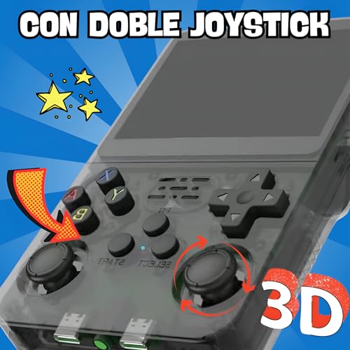 Se trata de una consola portátil y retro, que recuerda por su aspecto a la mítica Game Boy, pero con una mejor pantalla y a color, más boton… Se trata de una consola portátil y retro, que recuerda por su aspecto a la mítica Game Boy, pero con una mejor pantalla y a color, más botones. Es el similar al R36S.Tiene preinstalados unos 15.000 juegos de varios sistemas de consola, como los de PSX, mame, DreamCast, Nintendo 64, Neo Geo…Lo primero que llama la atención es su tamaño comedido, tirando a reducido, que se puede meter hasta en el bolsillo del pantalón. Su pantalla es IPS en HD de 3.5" pulgadas con una resolución de 640*480 como los clásicos pentium cuando se jugaba. Está equipado con un procesador Quad Core a 1,6 GHz y 1 GB de RAM. Suficientes para mover la mayoría de juegos. Me ha gustado su pantalla y se ve decentemente en interiores, en exteriores ya no tanto.La batería es de 3200 mAh, da entre 3-5 horas de juego, lo cual considero bastante aceptable, asegura entretenimiento para rato estés donde estés. La batería interna no está bien sujeta, tiene algo de holgura y se oye al moverse.Es un acierto que se incluya 2 joysticks para tener una mejor experiencia de juego, se hace más agradable y ameno. Tienen click por lo que suman varias funciones.La interfaz está bien hecha, con idioma en español, de una visibilidad clara y permite moverse bien entre las diferentes consolas / sistemas así como con la biblioteca de juegos y una previsualización de la caratula, juego, video, información.Dije antes que con la mayoría de juegos funciona bien, hay algunos que no porque van a trompicones, con fallas gráficas, no muy bien soportados… el fabricante o quien sea, ni se ha molestado en comprobar si es compatible con esta consola. Deberían verificarlos antes de lanzarlos. ¿De qué sirven tantos juegos si luego algunos de ellos no van perfectamente?Por suerte se pueden borrar, añadir otros sin problemas, si tienes un mínimo de conocimientos en transferencia de archivos. Por internet hay mucha información al respecto.Tiene 4 "gatillos" que son en realidad botones traseros para darle más funciones. En la base se ven 2 puertos USB C, uno es para cargar y otro es para OTG, para transferencia archivos. Los botones A, B, X, Y son algo pequeños, estaría mejor que fuesen un poco más grandes.En el frontal debajo de la pantalla se ve un piloto LED en el que muestra la actividad.Tiene dos ranuras SD a los extremos, uno para sistema y otro para juegos. Luego está el clásico ON/OFF, el reset, y el de subir / bajar volumen.Precio bastante elevado, pudiendo ver el mismo modelo en otros sitios por bastante menos. Es una pena. Ver más