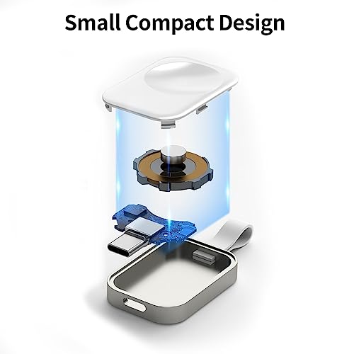 Una de las características más destacables de este cargador inalámbrico compatible con Apple Watch es su tamaño reducido: mide apenas 53 x 28 x 7 mm y pesa 20 gramos, lo que lo convierte en un dispositivo tremendamente portátil y ligero. Es fácil de guardar en un bolso, una mochila o incluso en un bolsillo, lo que lo vuelve ideal para personas en constante movimiento. Además, cuenta con un práctico lazo de goma que facilita sujetarlo al llavero o bolso para no perderlo.