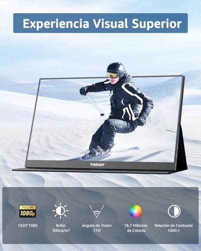 El Yodoit Monitor Portátil de 15,6″ ha recibido elogios por su calidad de imagen vibrante y nitidez, siendo una opción ideal tanto para trabajar como para jugar. La facilidad de conexión a través de USB-C y HDMI, junto con su diseño ligero y portable, lo convierten en un compañero versátil para quienes necesitan una segunda pantalla. Muchos destacan su excelente relación calidad-precio y la inclusión de todos los cables necesarios.