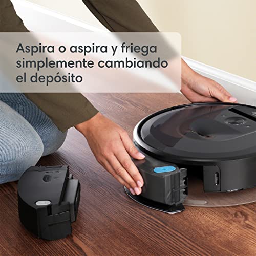 Una característica interesante del Roomba Combo i8 es que puedes elegir entre aspirar solamente o aspirar y fregar. Esto se logra cambiando el depósito del robot, lo cual es bastante sencillo y rápido. Cada vez que colocas el depósito de friegasuelos, el robot aspirador detecta automáticamente la función que debe realizar.