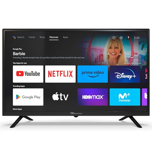 La Smart TV de 32 pulgadas de TD Systems funciona con Android 11 ATV. Este sistema operativo permite el acceso a diversas aplicaciones populares como YouTube, Netflix, Disney+, HBO Max y Prime Video, además de ser compatible con aplicaciones descargables desde la Play Store.