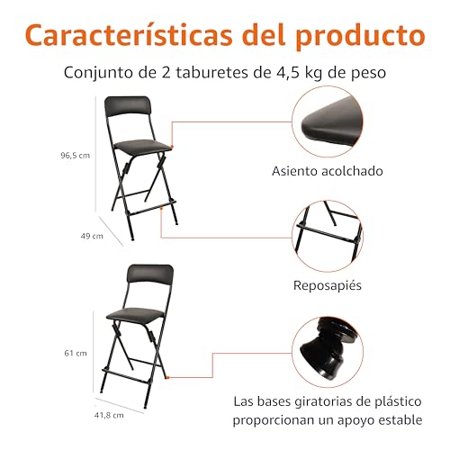 Este artículo se encuadra dentro de la categoría de taburetes plegables de cocina en Amazon.es, específicamente diseñado para quienes valoran la combinación de practicidad y comodidad. El paquete de 2 taburetes altos con respaldo es una opción destacada frente a otros modelos que no incorporan soporte lumbar o reposapiés.
