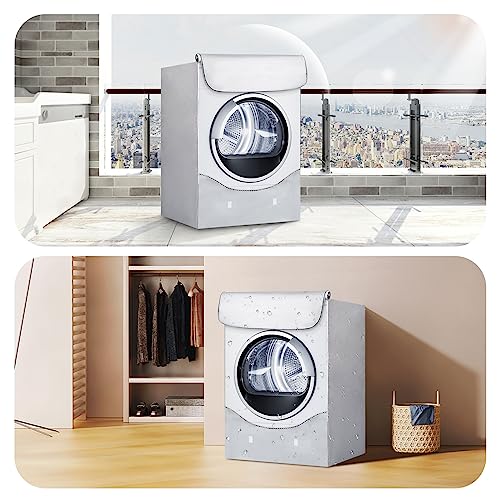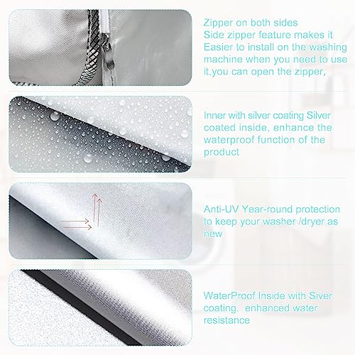 UKOFEW Funda Exterior Impermeable para Lavadora y Secadora de Carga Frontal – Cubierta Interior Anti-UV Silver Edge Zip