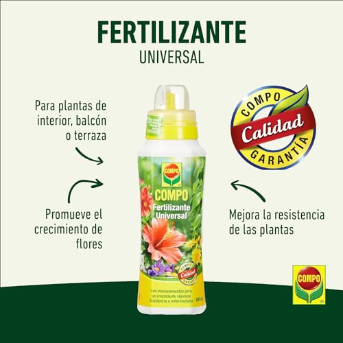 El compo fertilizante de calidad ofrece un fertilizante líquido universal pensado para plantas ornamentales de interior o en el balcón y terraza. Con su formato de 500 ml, este producto se presenta como una opción práctica y sencilla gracias a su práctico dosificador, que facilita medir la dosis correcta para cada tipo de planta.