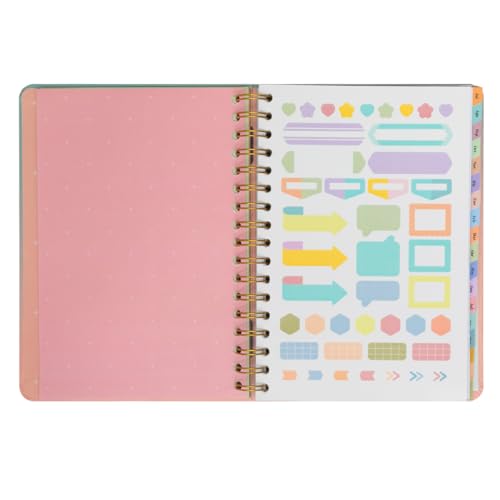 Esta agenda te ofrece una variedad de características útiles. En primer lugar, viene con 8 hojas de pegatinas y notas adhesivas con formas para personalizar tus agendas y calendarios. Además, contiene un planificador mensual al inicio de cada mes, junto con frases mensuales que son verdaderamente supermotivadoras.