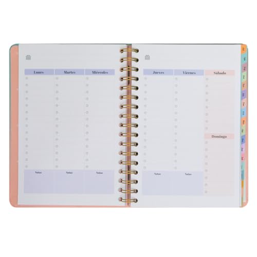 Una de las grandes ventajas de esta wonderful agenda es su capacidad para adaptarse a diferentes aspectos de la vida cotidiana. Puedes utilizarla para planificar tus horarios y calendarios, gestionar tus contactos con sus páginas dedicadas, y estar al tanto de tus finanzas con las tablas de ahorro incorporadas.