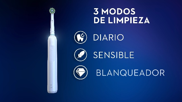 El Oral-B Pro 3 3000 ofrece tres modos de limpieza diferentes: modo de limpieza diaria, modo sensible y modo de blanqueamiento, permitiendo personalizar tu experiencia de cepillado.