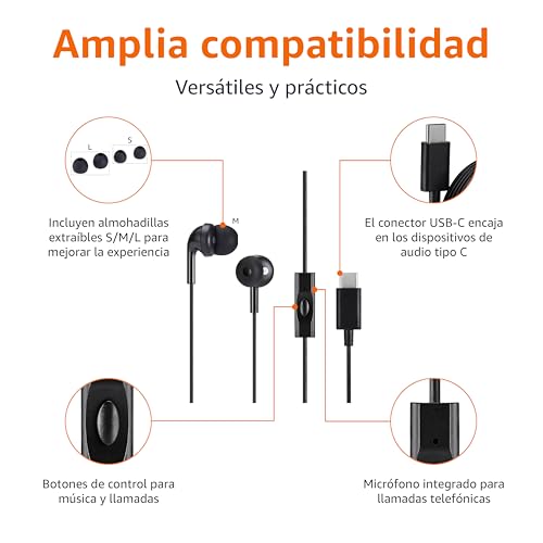 Amazon Basics lleva tiempo ofreciendo productos de buena calidad para uso diario, y su gama de auriculares USB-C con cable no es la excepción. Estos auriculares tipo in ear están diseñados para brindar un audio equilibrado y un micrófono integrado que permite contestar llamadas sin complicaciones. Su cable USB-C conectable es compatible con una gran variedad de dispositivos con puerto USB-C, desde teléfonos móviles hasta tablets y ordenadores portátiles. Esto los hace una opción versátil si buscas algo que puedas usar con diferentes gadgets sin depender de adaptadores extra.