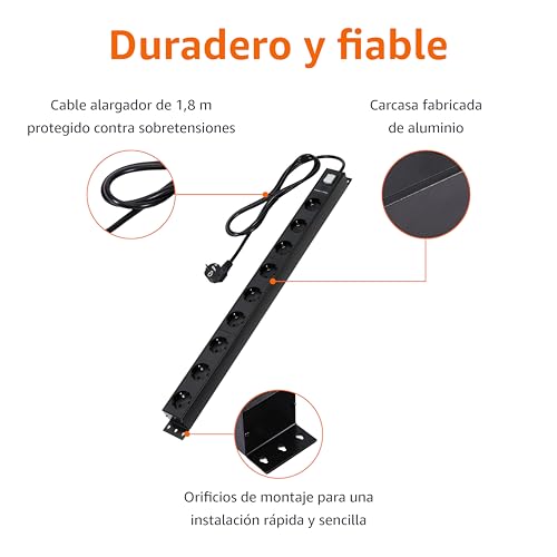 La tira de socket de Amazon Basics causa una impresión estable con su carcasa de metal y ofrece espacio para 9 dispositivos. La protección c… La tira de socket de Amazon Basics causa una impresión estable con su carcasa de metal y ofrece espacio para 9 dispositivos. La protección contra sobretensión con 600 julios es un extra sensato, y el cable de 1.8 m de largo garantiza una flexibilidad suficiente al colocar. Procesos sólidos y prácticamente para configuraciones más grandes, ya sea en la oficina o en el hogar. Funciona como debería. (Reseña traducida) Ver más