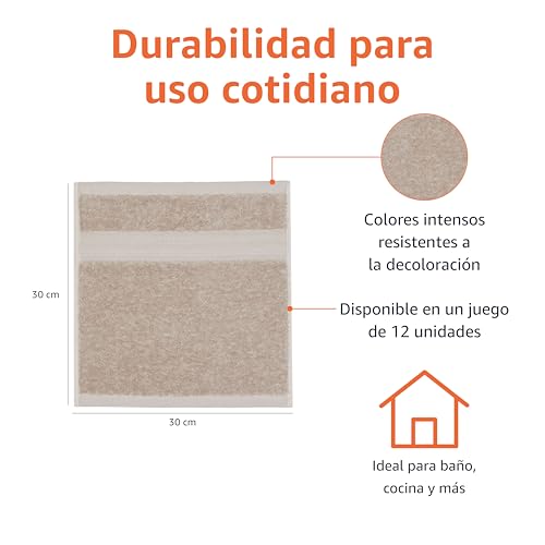 Es probable que al probar este paquete de 12 toallitas de algodón de Amazon Basics se aprecie la combinación de suavidad, durabilidad y resistencia a la decoloración, características importantes en toallas de baño usadas a diario. Su tamaño permite que sean muy versátiles, útiles para la cara o como toalla de mano en diferentes espacios del hogar y cocina.