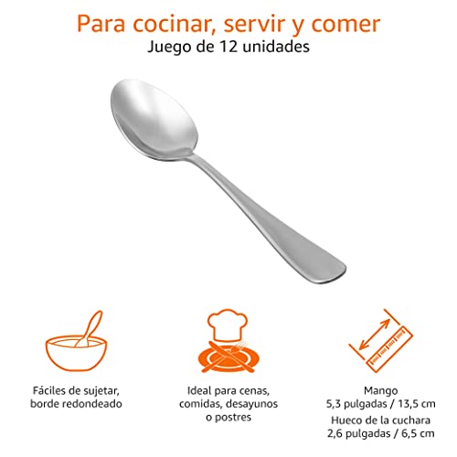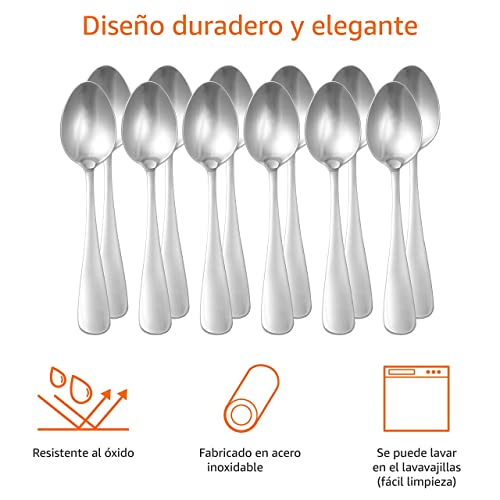 Este juego de 12 cucharas pertenece a la línea Amazon Basics, reconocida por ofrecer artículos confiables y con buena relación calidad-precio. Al estar fabricadas en acero inoxidable, estas cucharas no solo resultan atractivas por su brillo y acabado, sino que también aseguran resistencia contra manchas y corrosión, aspectos que contribuyen a una larga vida útil.