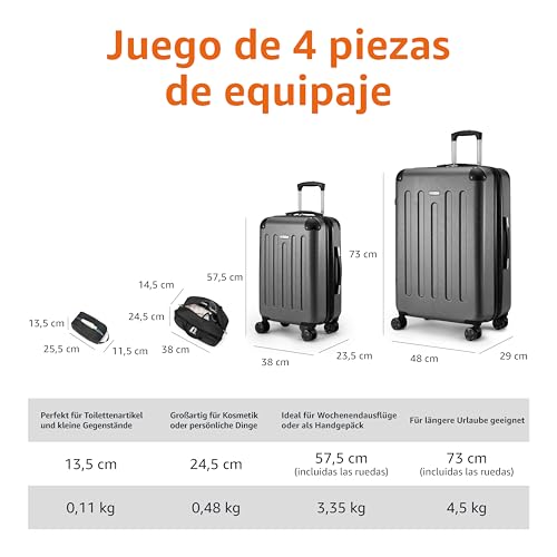 Este juego de equipaje entra en la categoría de maletas rígidas con 4 ruedas giratorias, orientado tanto a viajeros que buscan un set completo y funcional como a quienes prefieren piezas robustas y confiables para transportar sus pertenencias. Al adquirir este tipo de maleta de viaje cabina y combinaciones, se logra una buena relación calidad-precio dentro de la tienda de Amazon.