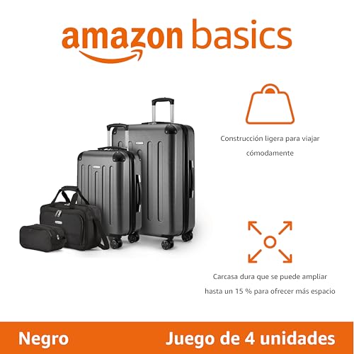 Una de las características que más valoran los usuarios es la capacidad de las maletas para adaptarse gracias a su condición ampliable o expandible. Juego de maletas Amazon Basics de 4 piezas en color negro, incluyendo maleta grande, maleta de mano y dos bolsas de viaje Poder aumentar un 15 % el equipaje disponible resulta práctico para esas escapadas largas o cuando añadimos alguna compra extra a último momento. Además, la combinación de tamaños — desde la maleta de mano hasta la maleta grande — se ajusta bastante bien a distintas necesidades, desde viajes de fin de semana hasta desplazamientos más largos.