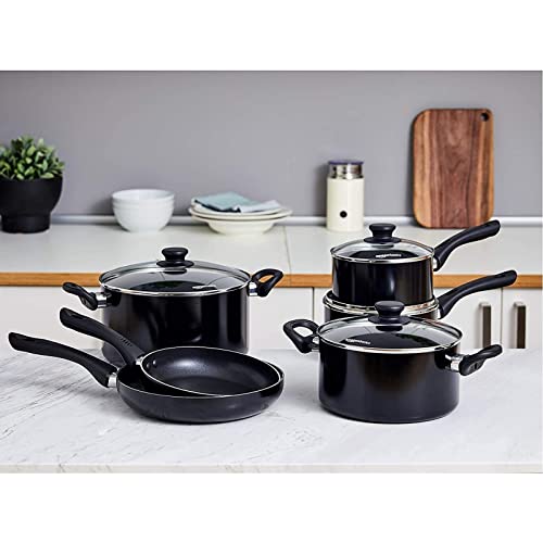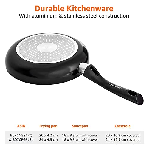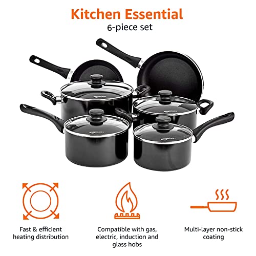 Amazon Basics Juego de Utensilios de Cocina de Inducción – Set de Aluminio Antiadherente con Tapas, 6 Piezas