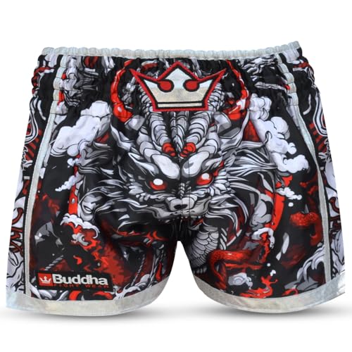 Buddha Fight Wear Pantalón Retro Premium Fantasy Snake – Pantalón corto para Muay Thai, Kick Boxing y Artes Marciales